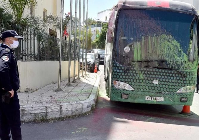 شاهد..تضرر حافلة الرجاء قبل موقعة الكلاسيكو أمام فندق الرباط بالعاصمة