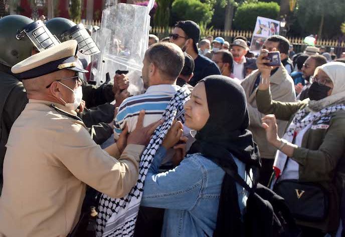 شاهد.. منع مسيرة مؤيدة لفلسطين بالرباط تصف المطبعين بالخونة