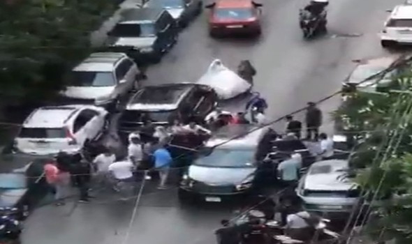 كذلك وثقت لقطات، مشاهد من اشتعال النيران في عدد من المحلاّت التجارية، بعد إصابتها بقذائف متطايرة، واحتراق عشرات السيارات العسكرية والمدنية وتحوّل بعضها إلى كومة رماد، وانهيار عدد من المنازل بعد اختراقها بالرصاص.
